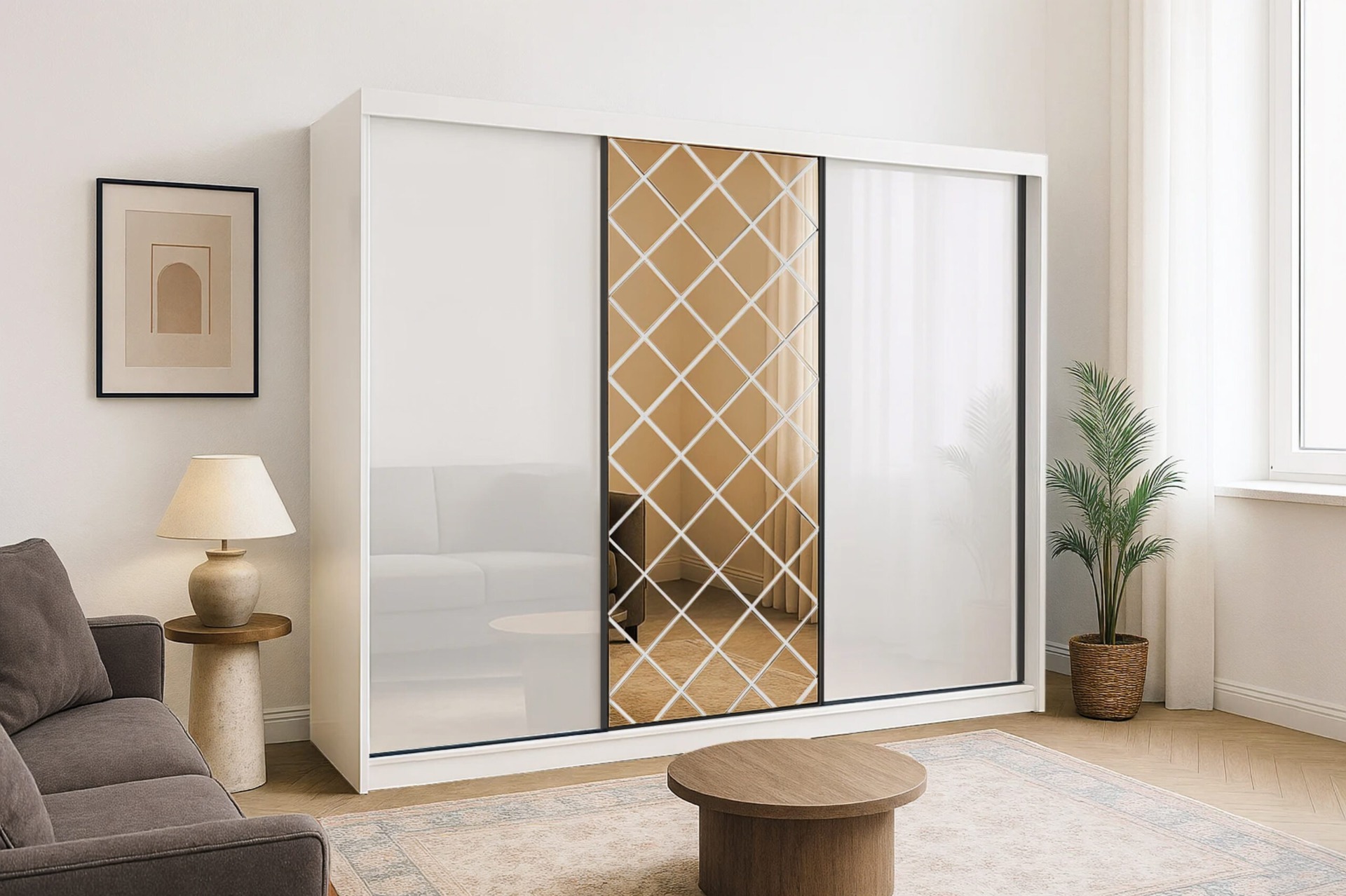 Portes coulissantes, miroir cuivré, poignées argentées, corps universel250cm x 216cm x 62cm